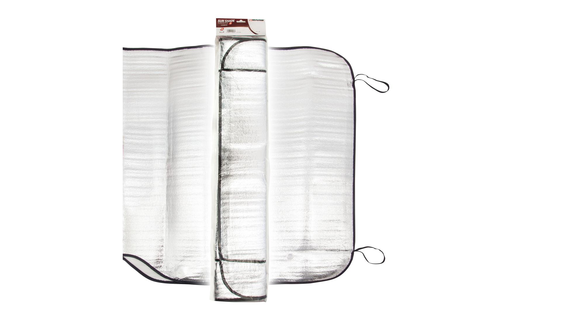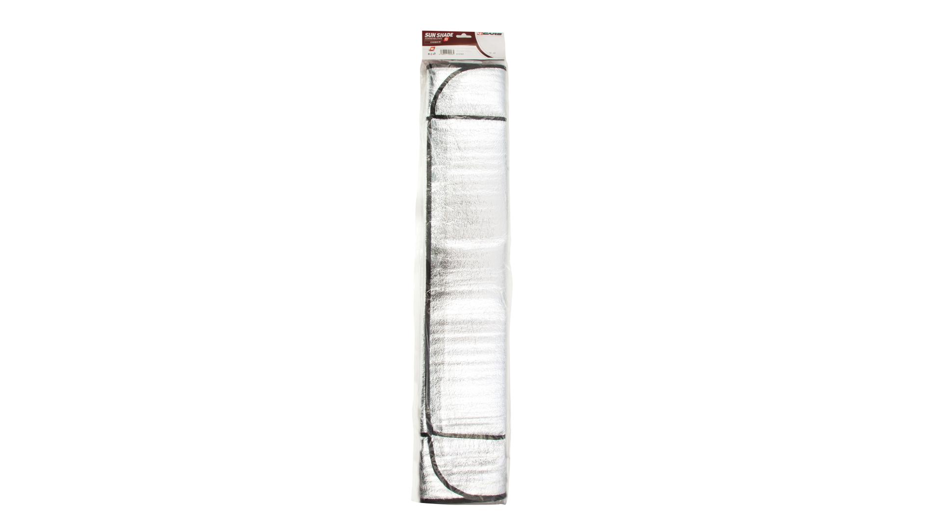 Táto clona efektívne blokuje UV žiarenie produkované slnkom, čím pomáha vyvažovať teplotu v interiéri vozidla. Clona je vyrobená z pevného izolačného materiálu so spevneným lemovaním a je určená na prednom (čelnom) skle vozidla). Upozorňujeme, že clona nesmie byť použitá počas jazdy. Rozmer: 150 x 80 centimetrov.