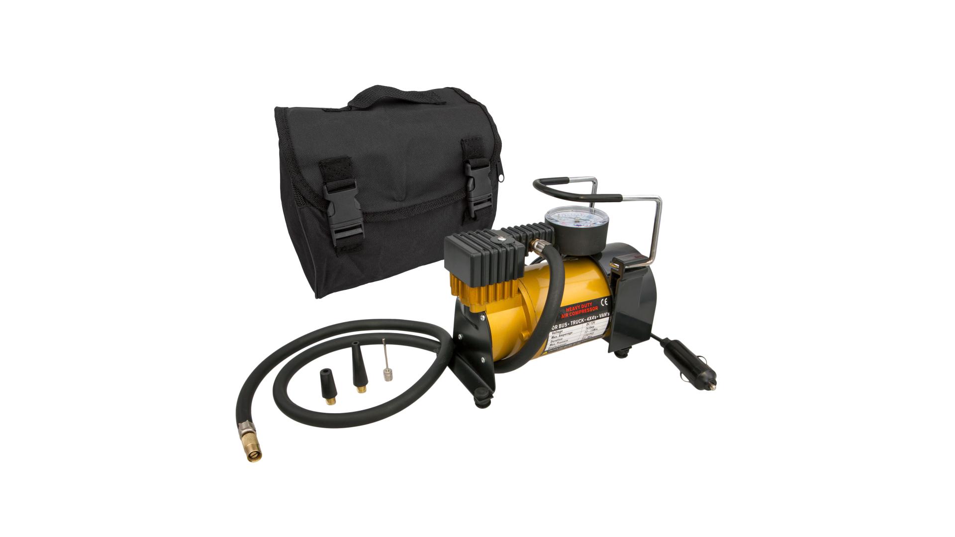 Extrémne vysoký výkon, kompresor pre autá, motocykle a bicykle. Vhodný aj pre športové vybavenie 12 V, max výkon : 150 PSI/18 bar, veľký tlakomer, 3 m napájací kábel sa zástrčka pre zásuvku zapaľovača. Ihla pre nafukovanie lôpt a 2 adaptéry pre nafukovacie predmety.   Návod na použitie: 1. Zastrčte zástrčku hustilky do 12V DC zásuvky zapaľovača cigariet. 2. Potom pevne naskrutkujte vzduchovú trysku na ventil pneumatiky, inak do pneumatiky nebude prúdit dostatočné množstvo vzduchu. 3. Pri hustení pneumatík venujte pozornosť ručičke ukazovateľa tlaku, ktorá stúpa spolu s množstvom vzduchu v pneumatike, bežne stačia 2-3 minúty, aby tlak vzduchu v pneumatike dosiahol hodnotu 206Kpa (0.206Mpa), čas hustenia pneumatiky pre menšie nákladné vozidlo môže byt o nieco dlhší. 4. Keď dosiahnete požadovanú hodnotu tlaku vzduchu, vypnite spínač, odskrutkujte trysku a odpojte hustilku od zdroja napätia, hustenie je dokončené.