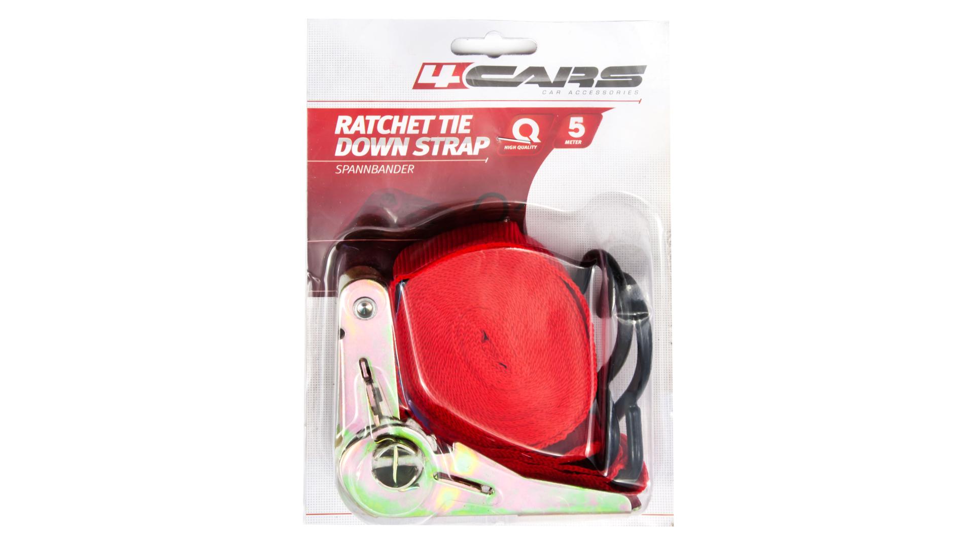 UPÍNACÍ POPRUH s kovovou račňou a hákom, šírka: 2,5 cm, dĺžka: 5 m, zaťaženie do 100kg.