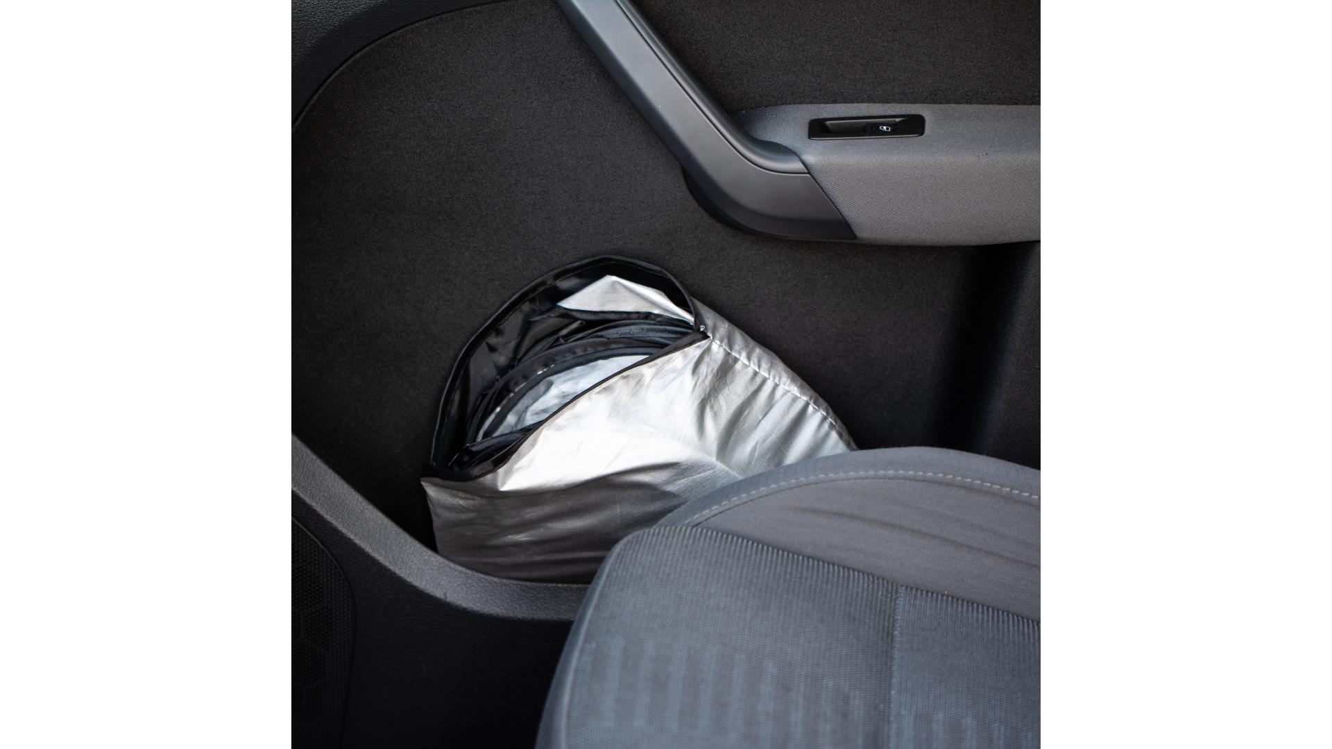 Návod na použitie: Vyberte zloženú clonu z praktického vrecka. Rozbaľte elastický pásik zo zloženého tienidla a vložte ho na sklo. Posuňte clonu na sklo a nastavte ju podľa potreby prostredníctvom pásikov.