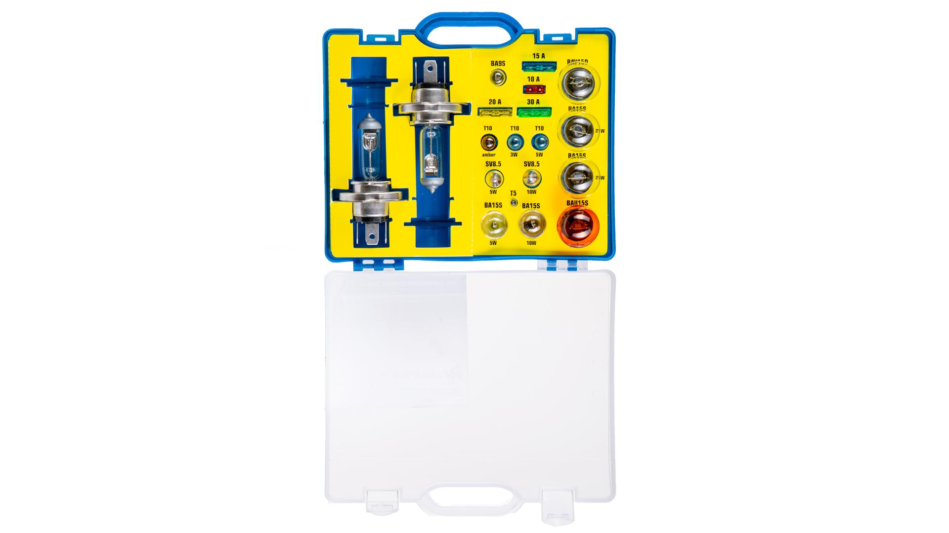 Praktický uzatvárateľný kufrík obsahujúci sadu žiaroviek H4 by nemal chýbať v žiadnom aute so svetlometmi používajúcimi žiarovky h4. V prípade nepredvídateľných skutočností ako napríklad nefunkčnosť žiarovky vám tento kufrík pomôže pokračovať v jazde bezpečne a bez pokuty. Sada obsahuje 15 ks žiaroviek + 4 poistky: