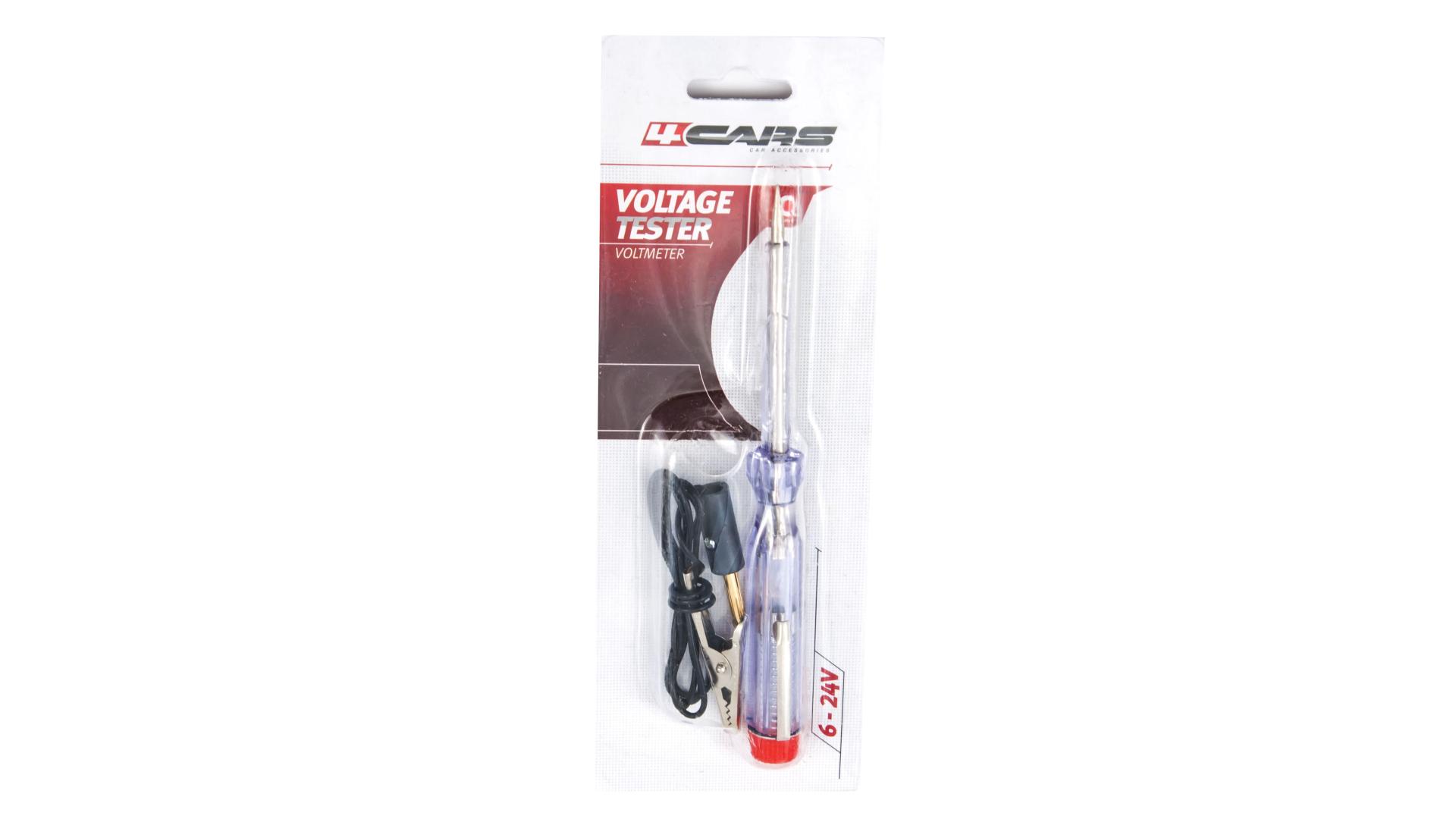 SKÚŠAČKA NAPÄTIA pre napätie 6-12-24V, material: kov a plast, so štipcom. K určeniu chyby pri vzniku nízkeho napätia.