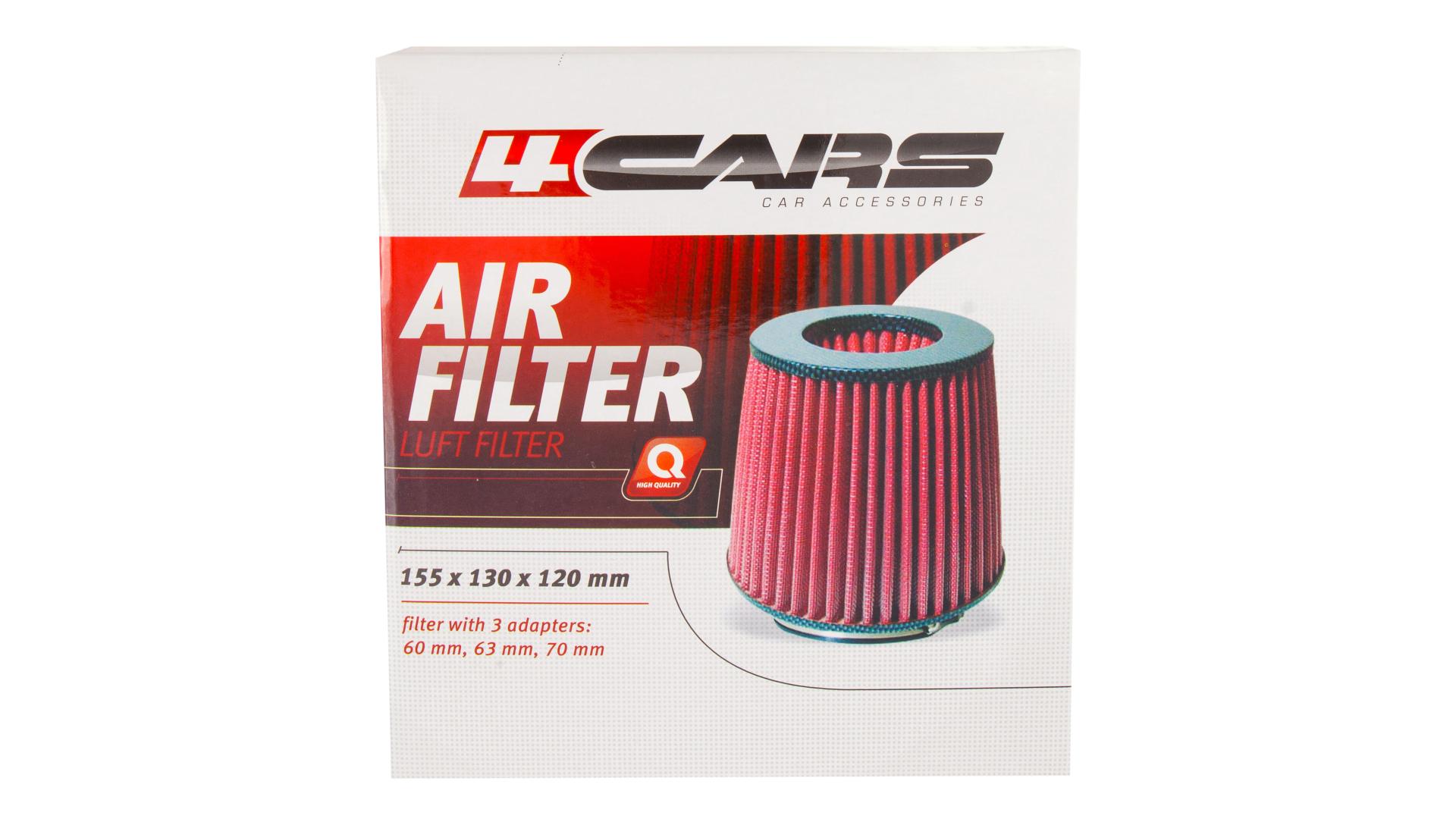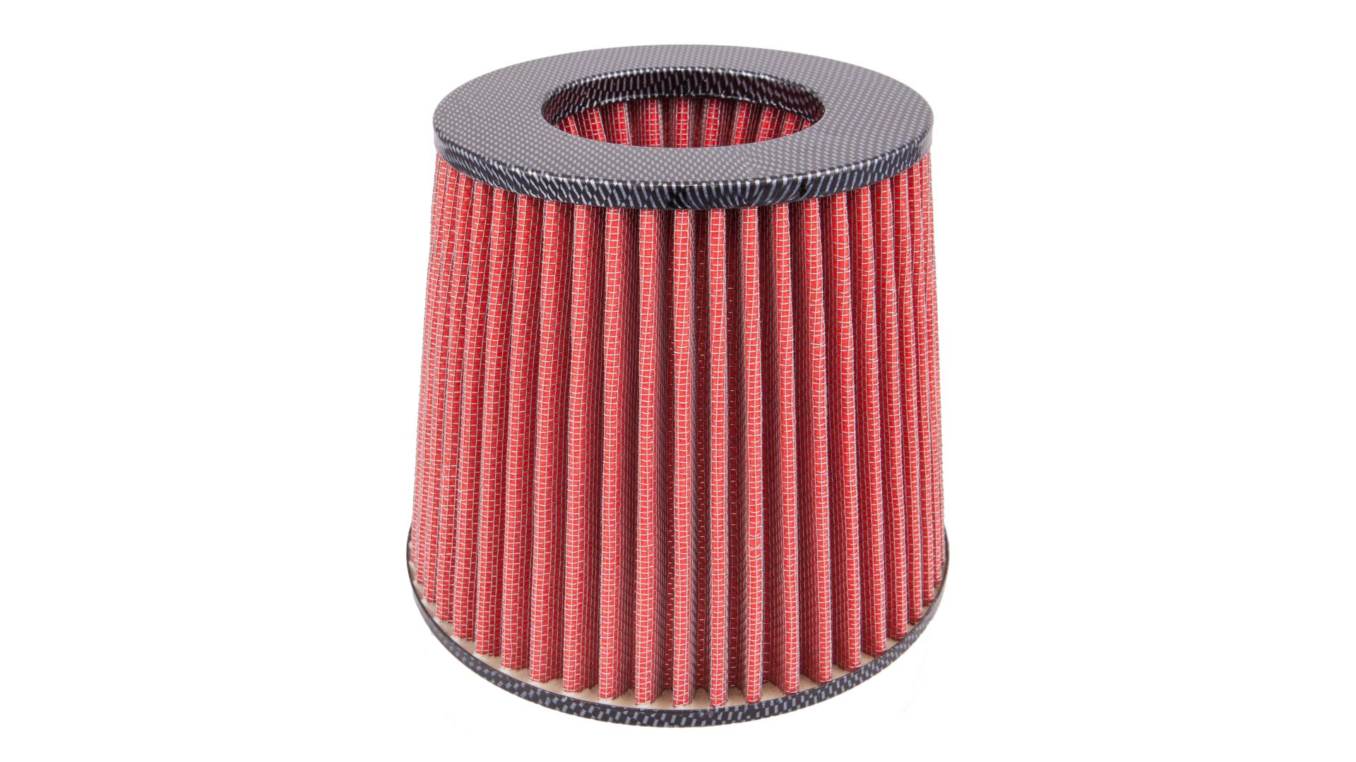 Výkonný vzduchový filter s univerzálnym použitím, takmer pre každý typ vozidla s pripevnením na 60, 63, 70, 75 mm. Kryt v carbonovom designe. Montáž odporúčame prenechať odborníkovi. Tento super výkonný a efektívny systém na čistenie vzduchu je určený pre vozidlá s výkonným motorom. Účinnosť prívodu vzduchu je značne zvýšená vďaka vírivému efektu, čo spôsobuje lepšiu reakciu motora, ako aj zníženie spotreby pohonných hmôt. Návod na použitie: Odmontujte pôvodný vzduchový filter. Ak je to potrebné, použijte jeden z pribalených adaptérov na namontovanie tohto vzduchového filtra na nasávanie vzduchu motora.