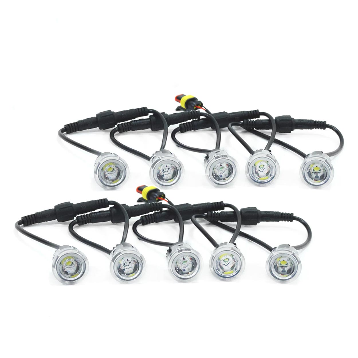 Menšia verzia modelu 502HP - 502mini. Rozmer jedného očka je len 23 mm, ktorá je výhodou oproti svetla NSSC 502 HP. Nekonečne veľa montážnych konfigurácií Vám umožňuje získať jedinečný a mimoriadne moderný vzhľad vozidla. štandardne sa sada skladá z 10 modulov, tzv očiek. úplná špecifikácia: LED diódy 1 x SMD (na očko) Rozmery (šírka / výška / hĺbka) o20 / (o23) x 21 (mm) Základná doska Vyrobená z hliníka Celková spotreba energie 10,56W Napätie 12 - 24 V Schválenie RL00, E4. Povolené pre prevádzku na základe RCE87 Vodotesný áno Automatický prepínač v prístroji áno Spojenie strojové áno Svetlomet šošvkovitý Záruka áno Predné sklo PE (bezpečné a v súlade s požiadavkami Eú)