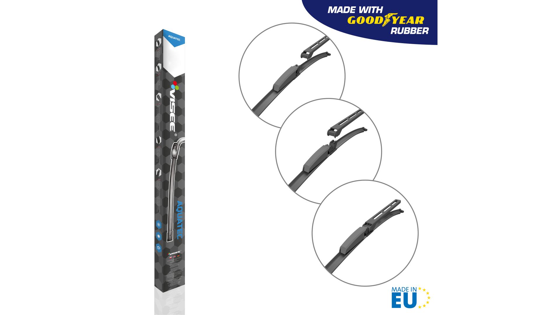 Stierače sú vyrobené z vulkanizovanej vysoko kvalitnej prírodnej gumy, obohatenej o aditíva, ktoré prispievajú k výnimočnej odolnosti voči UV žiareniu, striedaniu teplôt a tiež treniu. Vynikajúca trvanlivosť vďaka svojim nožom z kaučukových zmesí AQUATEC. Moderný dizajn stieračov prispieva k množstvu požadovaných vlastností ako napríklad nízka hlučnosť pri stieraní, vysoká aerodynamická efektívnosť pri vysokých rýchlostiach, stieranie po celej dĺžke stierača resp. okna. - Presná náhrada originálneho stierača, s kovovým upevnaním k ramenu - Gumičky značky GoodYear - Sada - ľavý predný a pravý predný stierač - Top kvalita prevedenia - Grafitové Gumičky s dlhotrvajúcim účinkom do každého počasia - Vysoko odolné voči mrazu